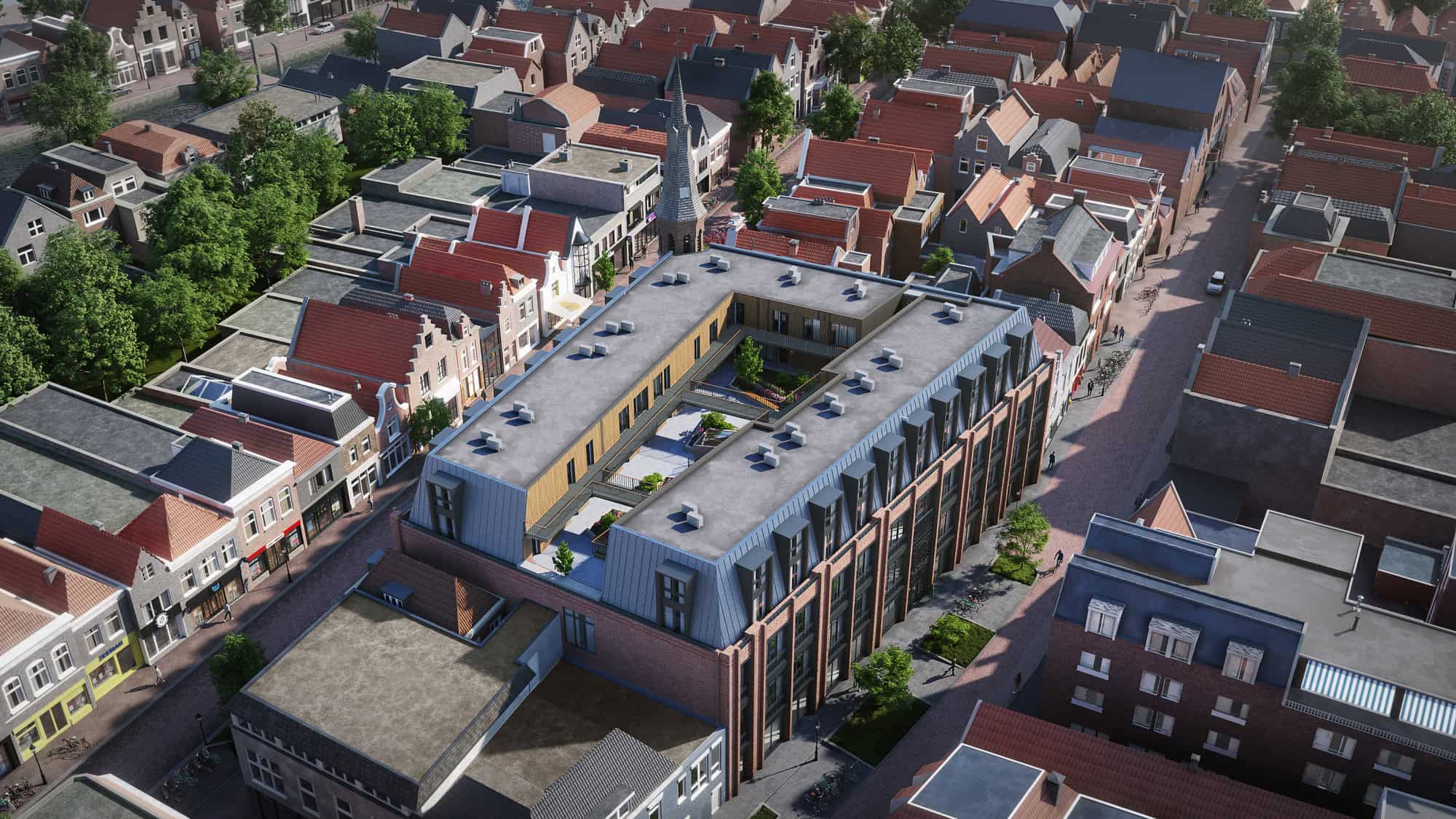 Aan De Laat in de binnenstad van Alkmaar, op de plek van de Dominicuskerk en later winkelcentrum Domus en Primark verrijst The Dome. Met respect voor het verleden wordt dit pand herontwikkeld tot een stijlvol appartementencomplex met 70 woningen en een commerciële plint. Starters op de woningmarkt, stellen en kleine huishoudens kunnen hier het gemak van de stad combineren met stijlvol wonen.